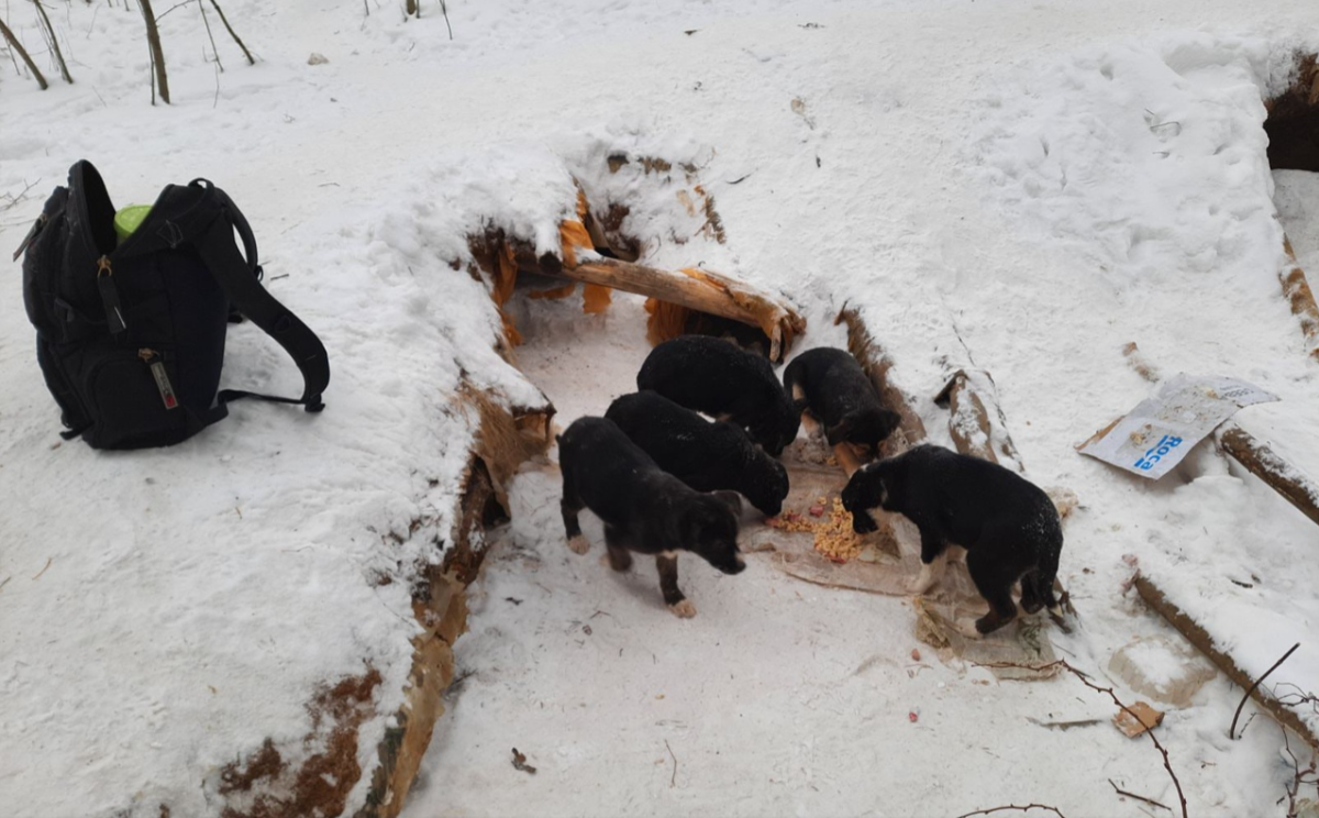 Челябинский пенсионер Юрий Порутчиков нашел в Шершневском бору несколько щенячьих выводков. И теперь каждый день — в хорошую погоду и в метель, стужу — он несет в «детский сад» для собак рюкзак мясных обрезков и каши. Без помощи этого доброго человека щенки давно бы погибли.
