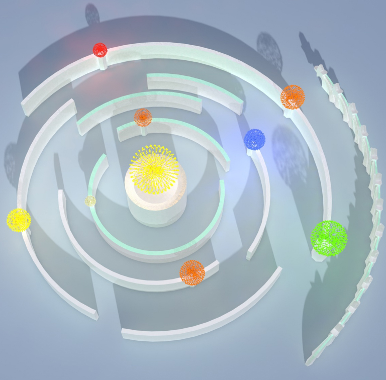 Помимо этого на площади Революции появится три лабиринта. Самый масштабный из них — «Солнечная система», по периметру которого установят шары, символизирующие девять планет. Также в городке появится лабиринт «Звёздная дорожка» и детский лабиринт.