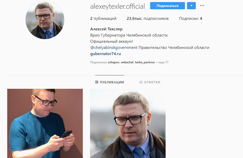 Всего три дня существует аккаунт Алексея Текслера в «Инстаграме», а количество подписчиков уже выросло до 23,6 тысячи. Это настоящий рекорд, ведь у остальных руководителей регионов УрФО показатели гораздо меньше, а аккаунты существуют дольше.