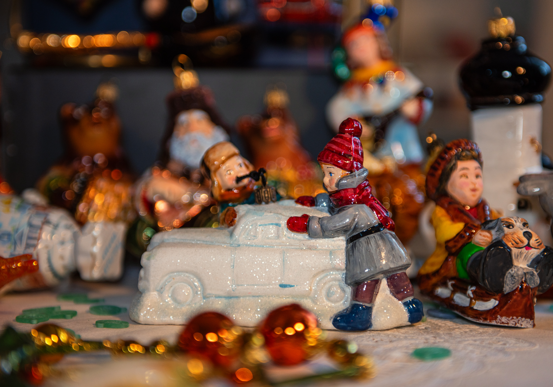 Она показывает старинную немецкую игрушку — снеговика и белочку, которые водят хоровод. Какой элемент восстановила Анна, не догадаться, так как изъянов на фигурках не видно.
