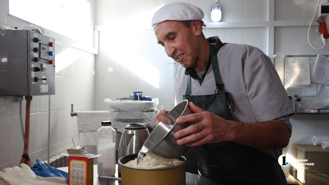 Сыр рождается в соседнем цехе. Там за процессом следит Наиль Галимов. На производстве он работает шесть лет. До этого трудился пекарем. Считает, что процессы в чем-то схожи. Главное — приступать к делу с хорошим настроем. Иначе сыр не получится, можно даже не пытаться.