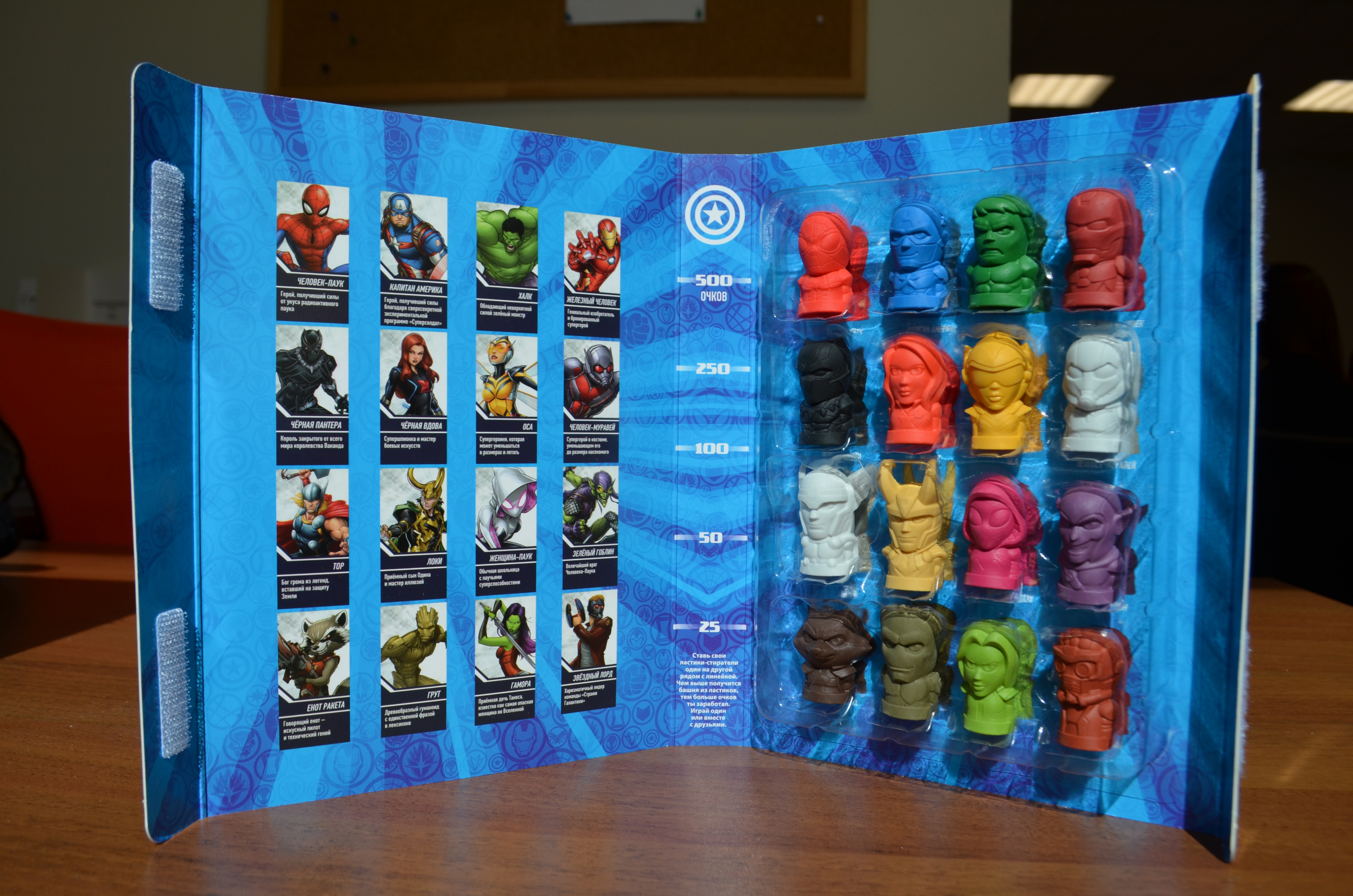 С 21 августа и вплоть до 8 октября покупателям на кассе дарят один из 16 ярких ластиков в виде супергероев киновселенной Marvel. Получить их можно: