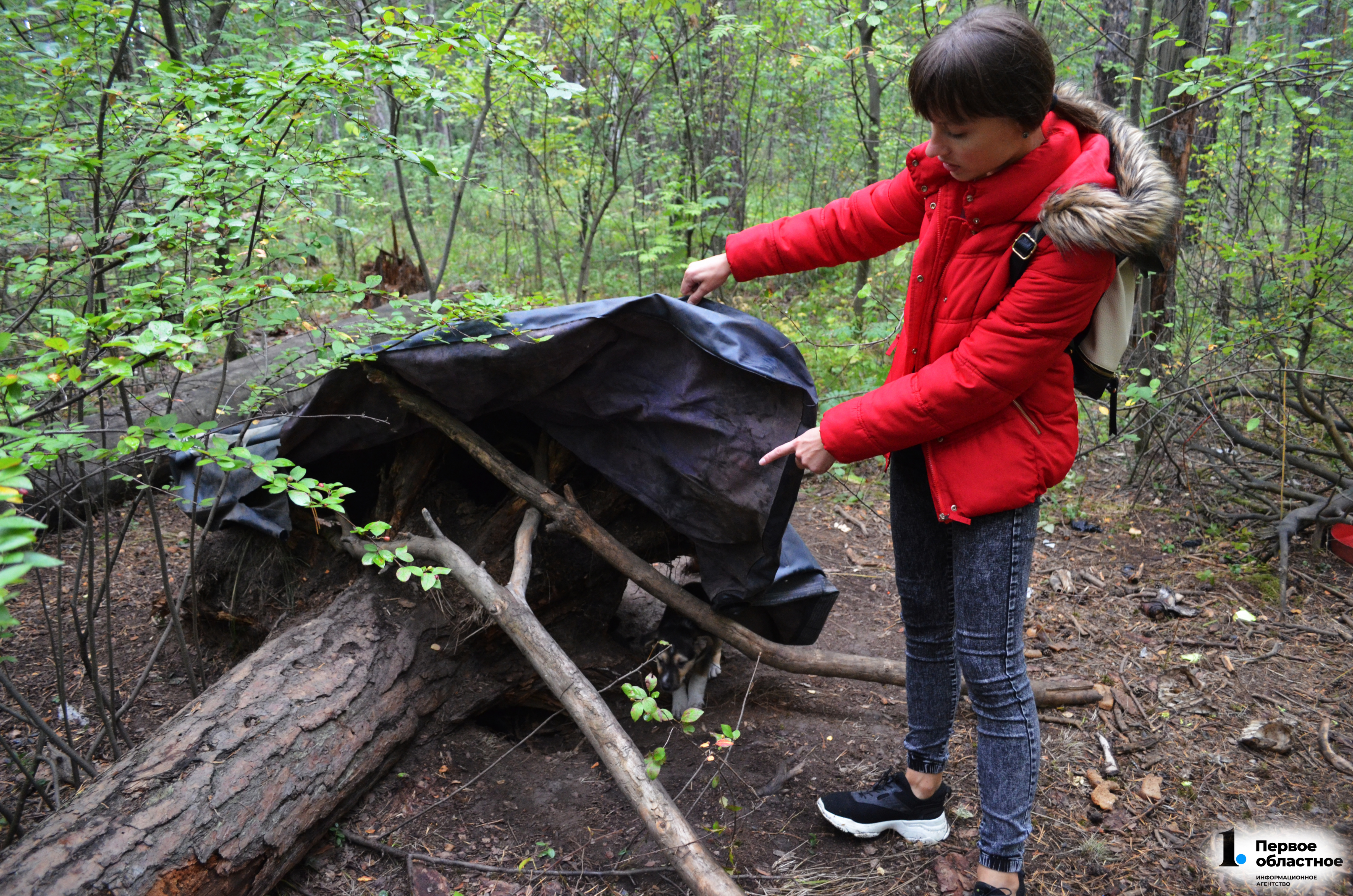 Час прогулки по лесу не прошел даром: мы нашли место обитания животных. Да не одно, а целых два, в нескольких десятках метров друг от друга. Оба представляют собой грязные норы под упавшими деревьями, накрытые резиновыми накидками, которые принесли неравнодушные люди. В норе жались друг к другу самые нерешительные и трусливые щенки. Остальные, услышав наши шаги, убежали. Метрах в пяти лаяла собака-мать. Ближе она не подходила: хоть за потомство и переживала, но страх перед людьми, вселенный догхантерами, оказался сильнее.