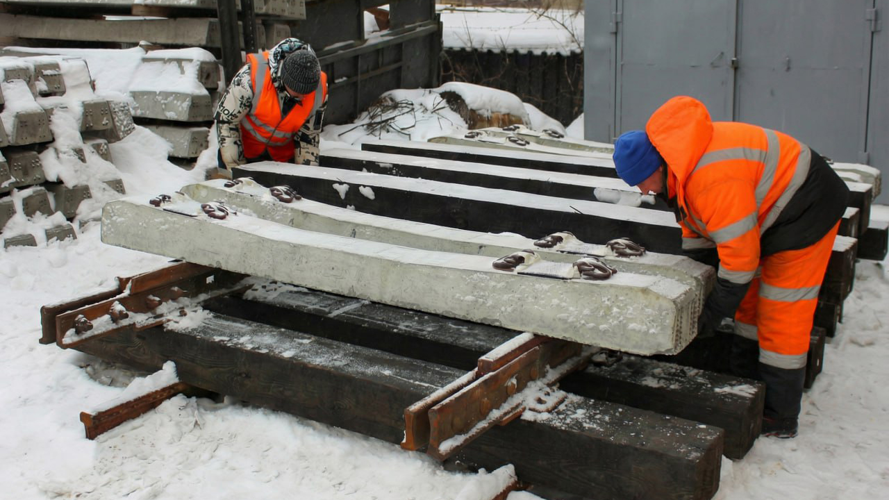 В ходе капитального ремонта подрядчик полностью заменит рельсошпальную решетку. Вместо старых звеньев будут уложены современные 25‑метровые плети, которые уже доставлены к месту работ.