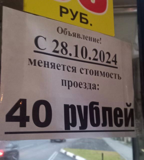 В маршрутном такси № 85 появилось объявление о повышении цен за проезд с 28 октября. Сейчас цена составляет 33 рубля, а после поднимется до 40 рублей.