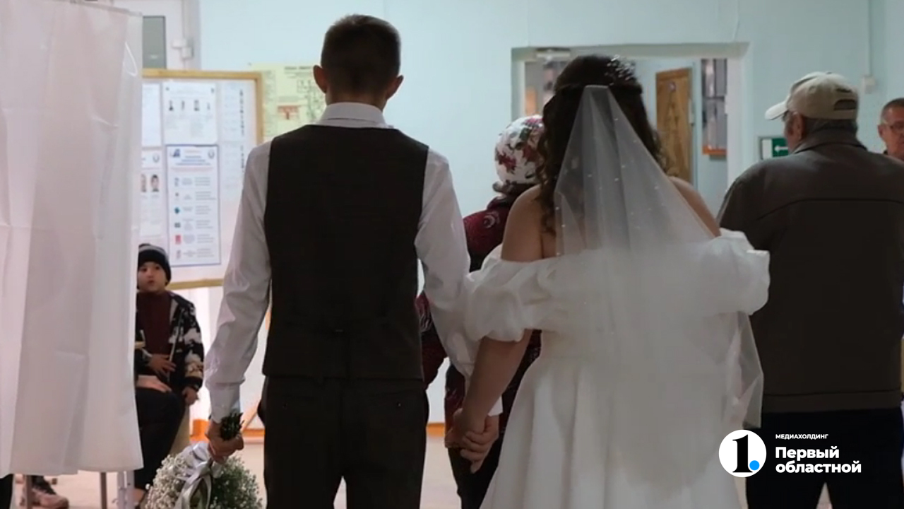 Свадьба не повод пропускать выборы, решили жители Миасса Дарья Муратова и Алексей Устименко и, перед тем как отправиться в ЗАГС, приехали на избирательный участок, расположенный в школе № 20, передают корреспонденты Первого областного медиахолдинга.