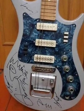 Второе по стоимости место занимает электрогитара «Урал» с автографом ВИА «Ариэль» стоимостью 999 тысяч рублей. В описании указано, что на музыкальном инструменте есть подписи Валерия Ярушина, Льва Гурова, Ростислава Геппа, Александра Тибелиуса, Бориса Каплуна.