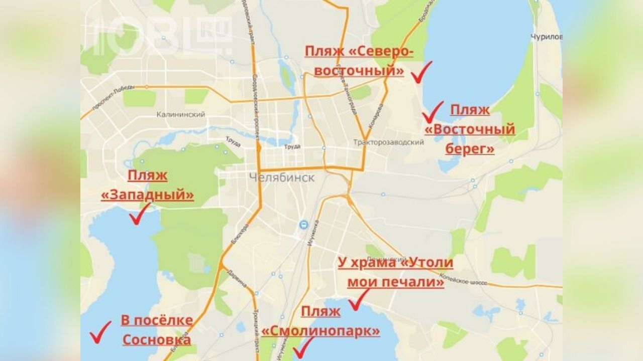 «На Шершневском водохранилище купели будут располагаться в районе поста ГИБДД на территории пляжа "Западный" и в Сосновке, на улице Красных казаков, неподалеку от Храма святых апостолов Петра и Павла. В Ленинском районе — на озере Смолино, на улице Электровозной, близ храма "Утоли мои печали". В Советском районе — на пляже гостиничного комплекса "Смолинопарк". В Тракторозаводском районе — на Первом озере: переулок Мамина 1а и пляж "Восточный берег"», — сообщил заместитель главы Челябинска по социальному развитию Сергей Авдеев.