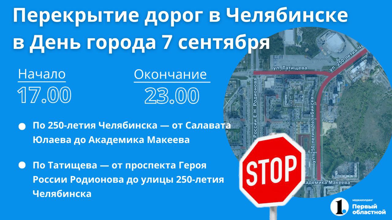Так, с 17 до 23 часов нельзя будет проехать по улице 250-летия Челябинска от Салавата Юлаева до Академика Макеева и по улице Татищева от проспекта Героя России Родионова до улицы 250-летия Челябинска.