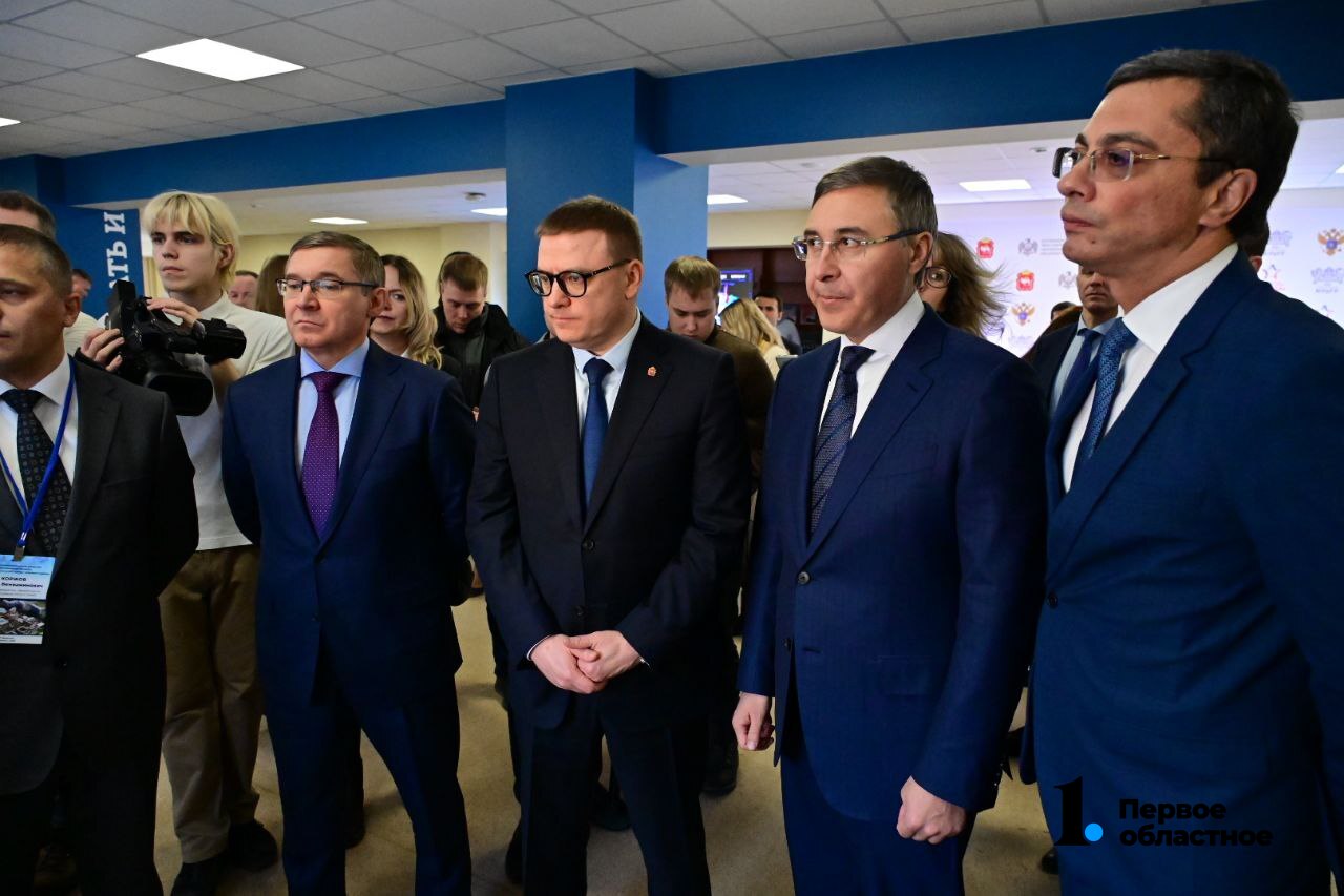 Министр науки и высшего образования РФ Валерий Фальков, зампред Союза машиностроителей России Владимир Гутенев, полномочный представитель президента РФ в УрФО Владимир Якушев, губернатор Челябинской области Алексей Текслер познакомились с передовыми научными разработками ученых ЮУрГУ. Здесь организовали выставку техники, оборудование для которой разработали южноуральские специалисты, передает корреспондент ИА «Первое областное».
