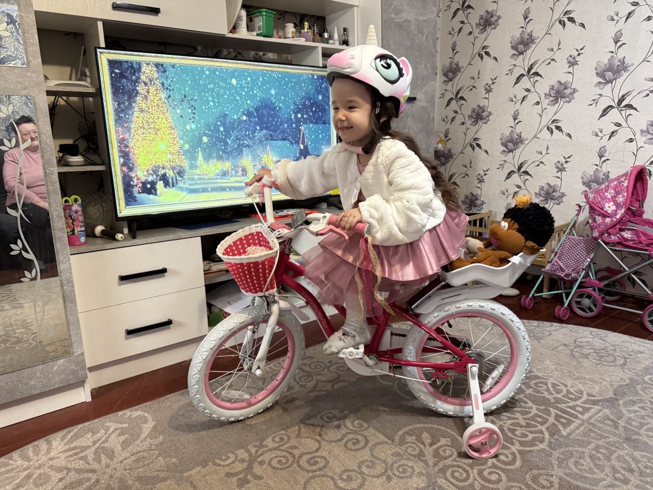 Девчушка, получив заветный двухколесный транспорт, записала для Алексея Текслера видеообращение с благодарностью и новогодними поздравлениями.