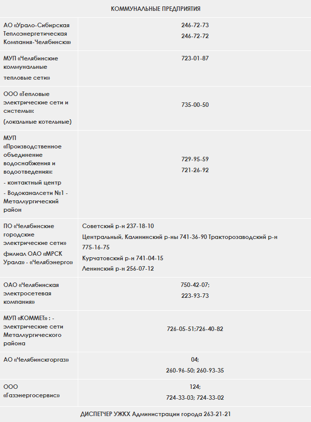 В администрации Челябинска подчеркнули, что для обращений в праздничные дни есть телефоны аварийно-диспетчерских служб города.