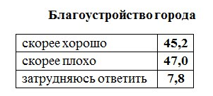 Мнения относительно городского благоустройства среди респондентов разделились. Нашлось 45,2% тех, кто считает, что ситуацию в сфере благоустройства можно охарактеризовать позицией «скорее хорошо» и 47% горожан, считающих, что все «скорее плохо». При этом социально-демографические характеристики коррелируются среди положительно и негативно настроенных горожан также, как и в первом варианте.