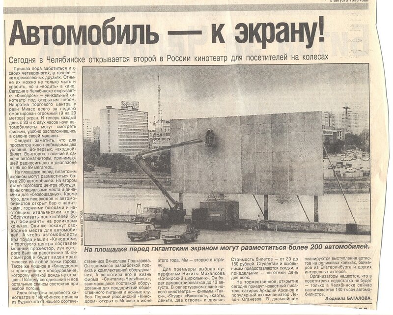 На парковке у набережной в 1999 году открыли первый на Урале (и второй в России) автокинотеатр.