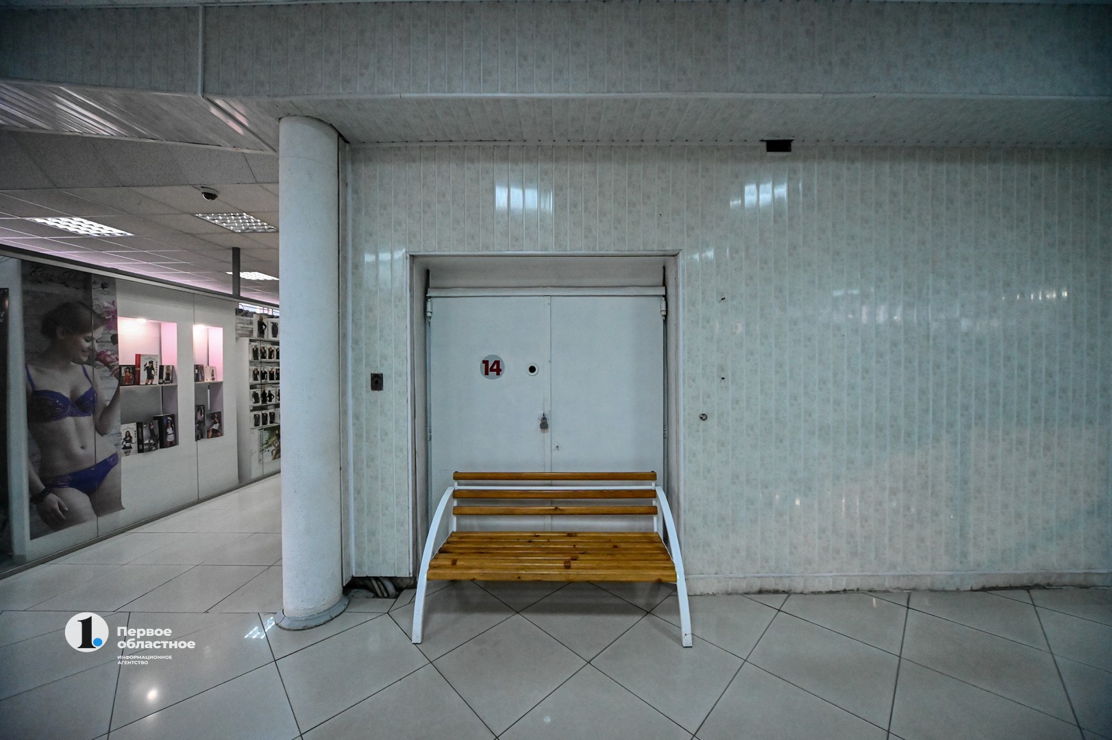 Мы гуляем по этажам Торгового центра, потихоньку поднимаясь с цоколя на чердачок. Проходим мимо массивных дверей лифтов, намертво перегороженных скамейками. А ведь этих шахт 14 штук! С помощью подъемников со складов поднимали товары, а машины в складские помещения заезжали по тоннелю. Он и сейчас функционирует. А лифты почти все перекрыты.
