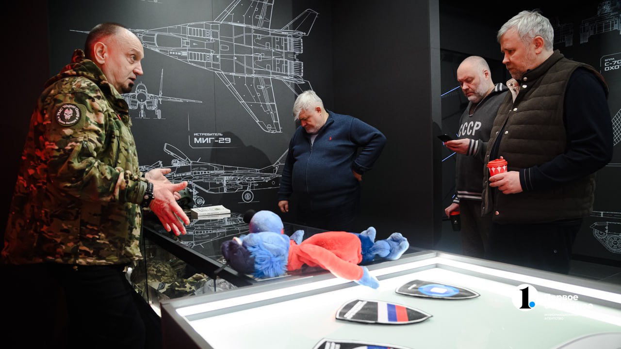 Знакомство с южноуральской столицей почётные гости начали с посещения музея СВО. Патриотический центр был открыт в Челябинске в декабре прошлого года. Здесь представлены экспозиции и интерактивные площадки, которые знакомят с историей начала СВО, героями спецоперации.