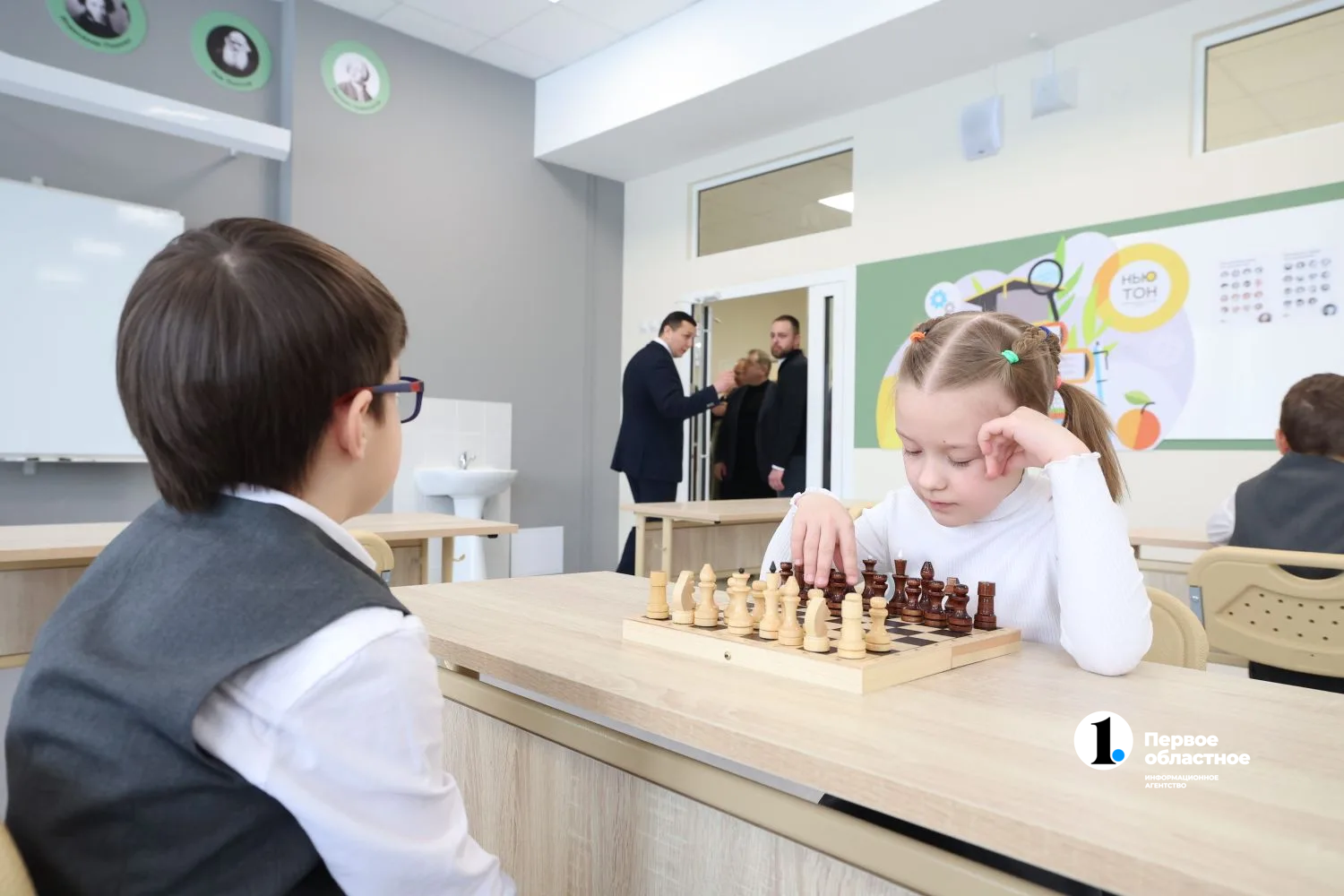 «Помещения шикарные. У меня здесь учатся две дочери. Они в 1-м классе и в 5-м классе. Помещения ОЦ „Ньютон“, я бы сказала, оснащение здесь очень хорошее», — делится впечатлениями председатель родительского комитета Вера Окунева.
