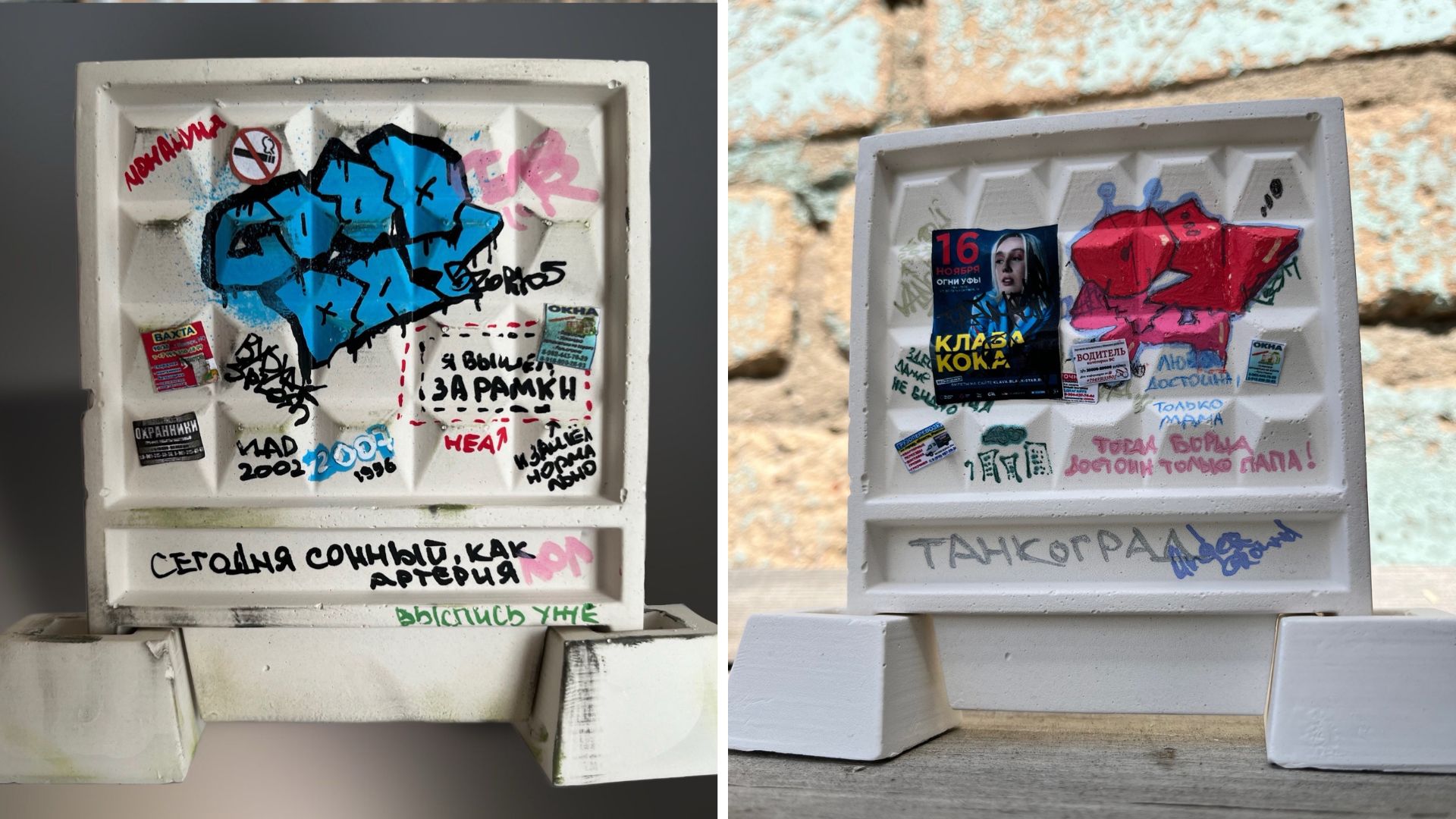 Помимо шкатулок, есть и кашпо в виде культовых бетонных заборов. Изначально их отливали из готовых форм, затем раскрашивали в уличном стиле и продавали. Это был старт перед тем, как заняться оригинальными изделиями. Сейчас в ассортименте осталось и кашпо, и есть просто миниатюрные заборчики.