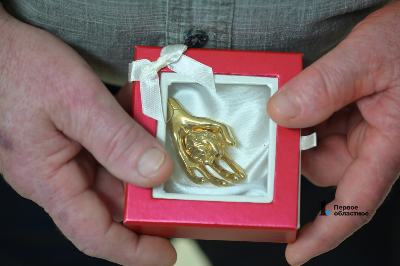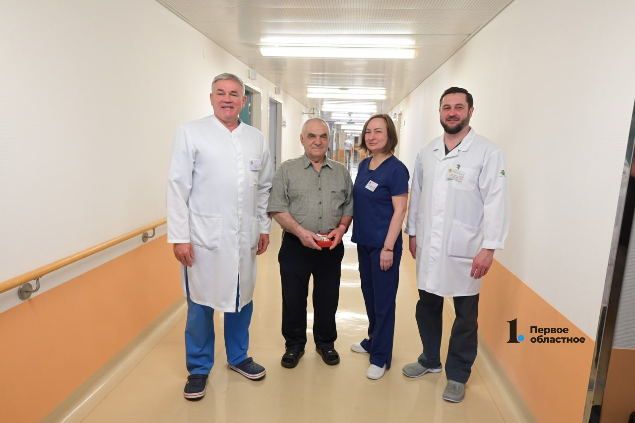Как и 14 лет назад, доктора сделали памятную фотографию с пациентом. Ивану Николаевичу также вручили небольшой сувенир — сердце в ладонях доктора — символ работы челябинских медиков.