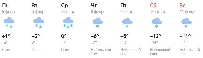 «Погодой Урала в первой декаде февраля дирижирует обширный циклон с центром над Баренцевым морем. Атмосферные фронты и волновые частные циклоны периодически вызывают снегопады и колебания температуры. 5 февраля при движении небольшого фронтального циклона ожидается, что умеренный снег выпадет повсеместно. Температура воздуха ожидается на 3—5°С выше нормы. 6—7 февраля при юго-западном ветре вероятна слабая оттепель: днем температура поднимется до 0…+2°С. Пройдут осадки в виде мокрого снега», — рассказали синоптики Уральского управления по гидрометеорологии и мониторингу окружающей среды.