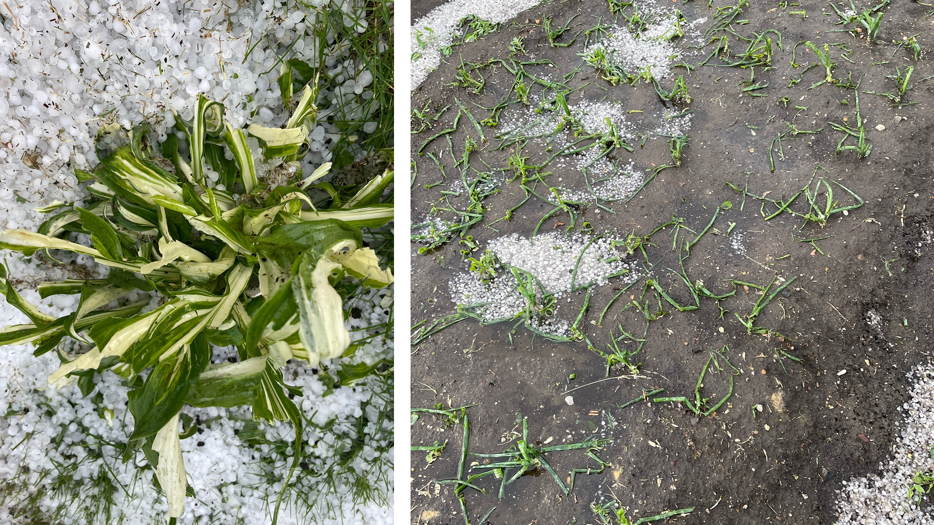 «Град был минут 30—40, за это время побил все: петуньи, ягоды. Теперь отдельно листва, отдельно ягодки лежат. Прошло уже два часа, а град все еще на земле, не тает», — рассказала корреспонденту ИА «Первое областное» жительница района Елена Никитина.
