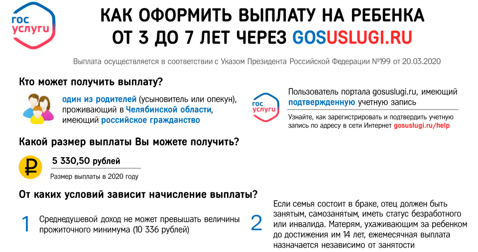 Для того, чтобы получить это пособие, необходимо зайти на сайт gosuslugi. ru, ввести логин и пароль, найти и выбрать услугу «Ежемесячная выплата на детей от 3 до 7 лет».