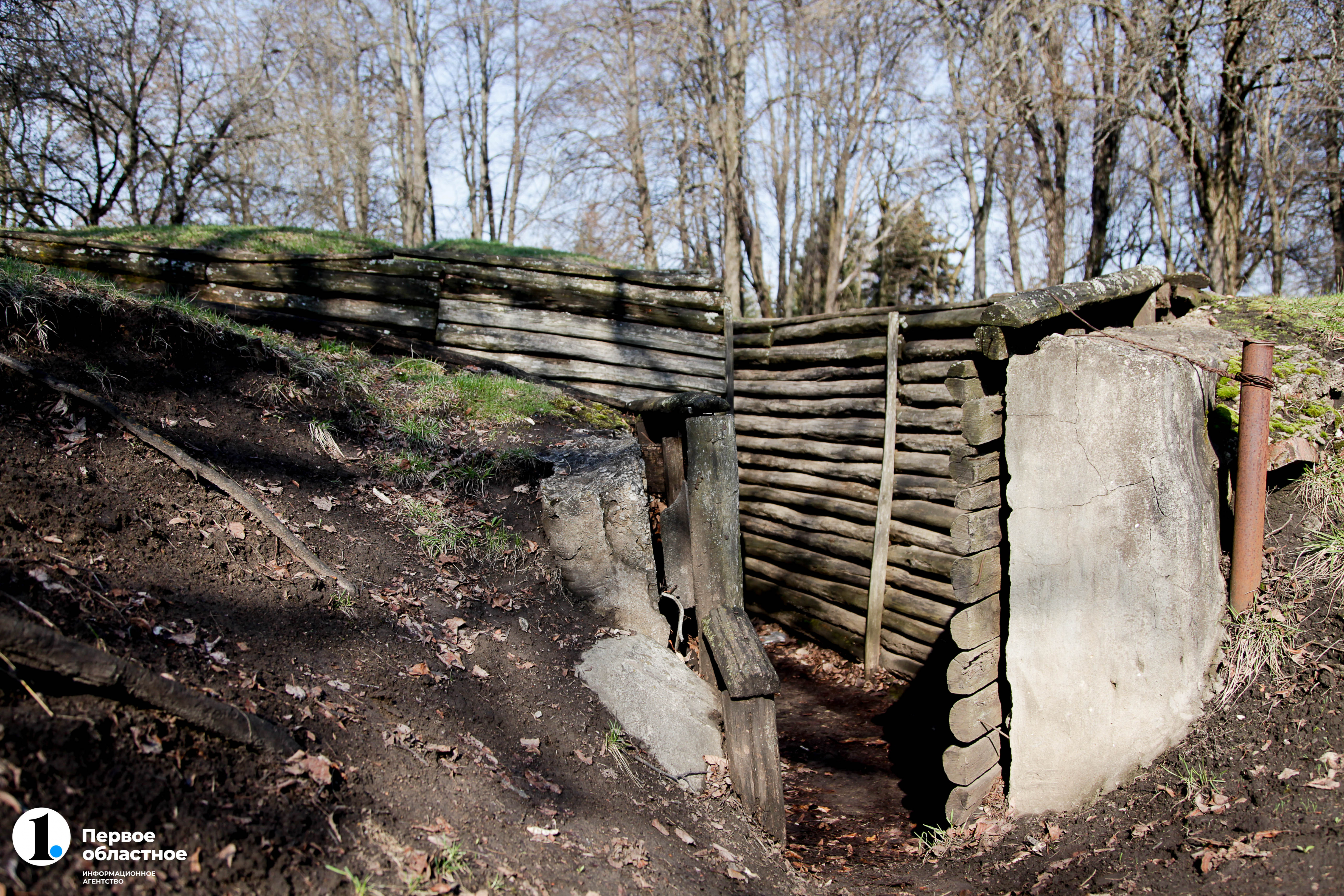 У подножия барельефа белгородцы заботливо сохранили деревянный блиндаж времен Великой Отечественной войны. Конечно, место облагорожено. Вдоль окопа проложена тротуарная плитка. Над изрытой снарядами русской землей за эти годы поднялись раскидистые деревья. Когда-то весь этот пятачок был залит русской кровью.