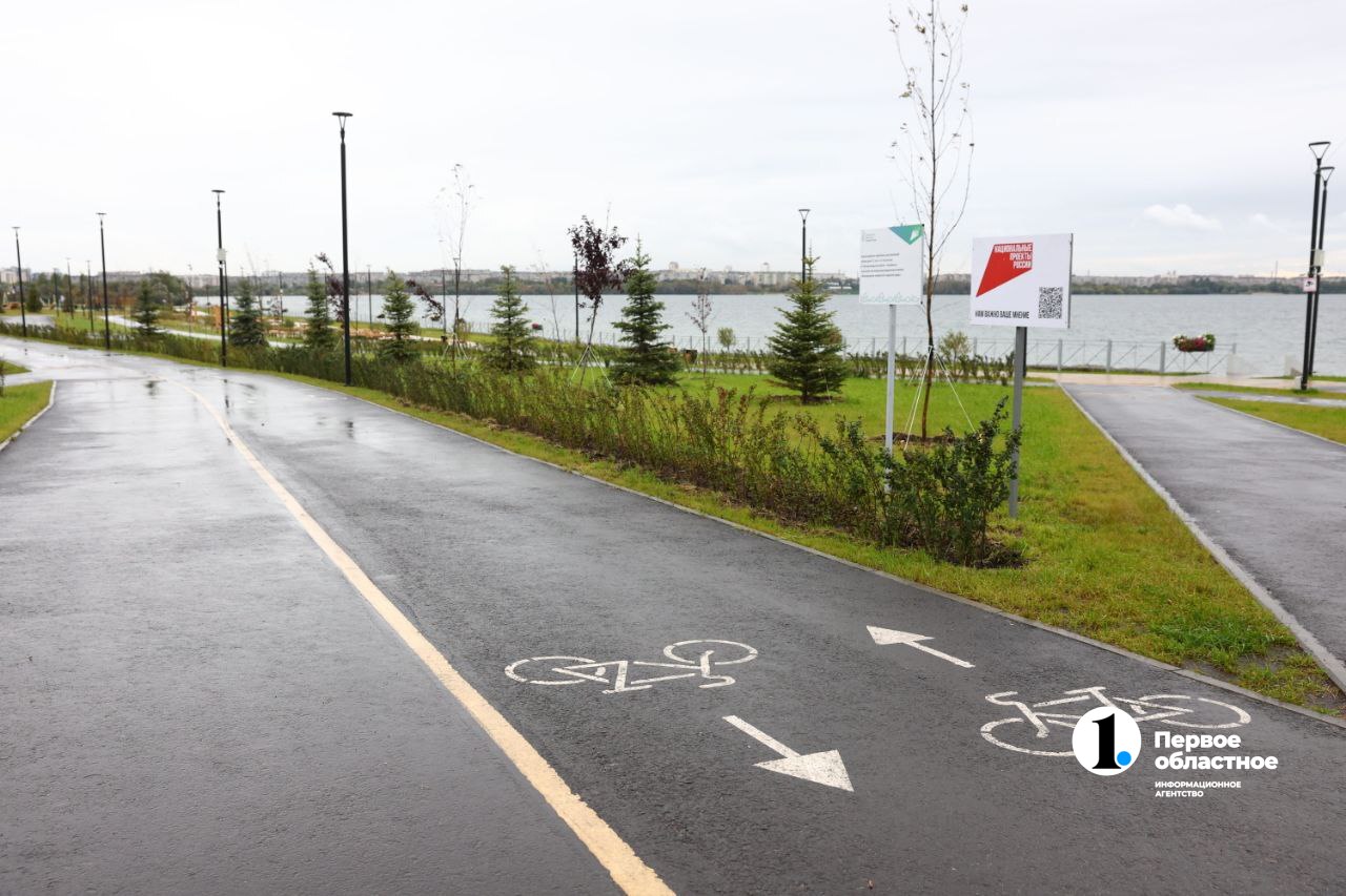 На территории укреплена береговая линия, проложены велодорожки. Для машин есть удобная парковка. С прошлого года прижились саженцы деревьев и кустарников. Для мам с колясками и маломобильных жителей оборудованы пандусы.