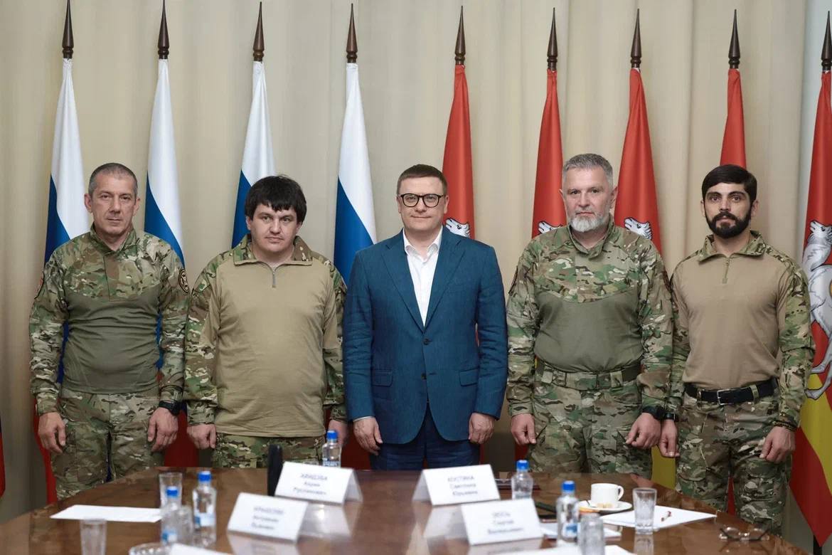 Представители легендарной интернациональной бригады «Пятнашка», которые прибыли в Челябинскую область, в завершение насыщенного дня — а они побывали на ряде заводов, на тренировочной площадке спецназа ГРУ и передвижной выставке трофейной техники НАТО, а также в реготделении фонда «Защитники Отечества» и облвоенкомате, — встретились с губернатором Алексеем Текслером.