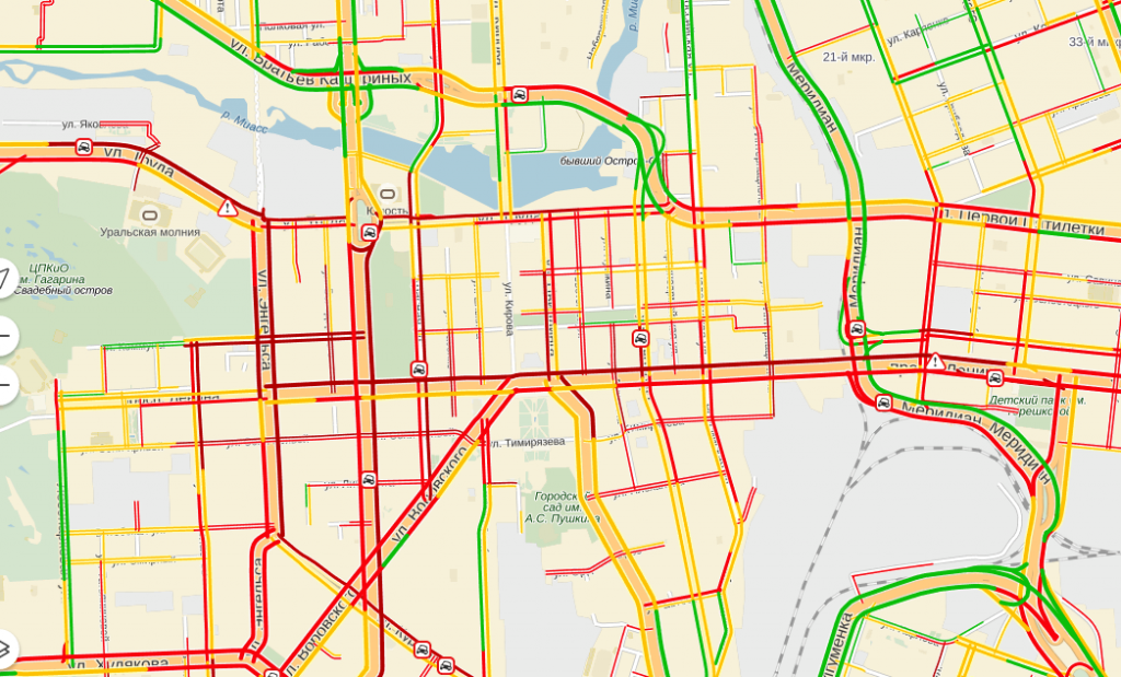 Система сервиса «Яндекс. Пробки» сообщает: на данный момент наиболее тяжелая ситуация складывается в центре города. Проспекты Ленина и Свердловский, а также улицы Энгельса и Труда «покраснели» на карте. Скорость движения по указанным дорогам не превышает 5 километров в час. При этом на улице Труда, согласно данным сервиса, машины и вовсе двигаются со скоростью 2 километра в час. Причиной такого сильного затора на ней стало ДТП недалеко от торгового центра «Родник».