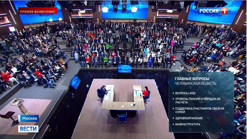 Отметим, к началу прямой линии президенту поступило более 2 миллионов обращений. В основном граждан интересует социальная политика. Жители Челябинской области задают вопросы, касающиеся ЖКХ, уровня пенсий и порядка их расчета, поддержки участников СВО и их семей, здравоохранения и инфраструктуры.