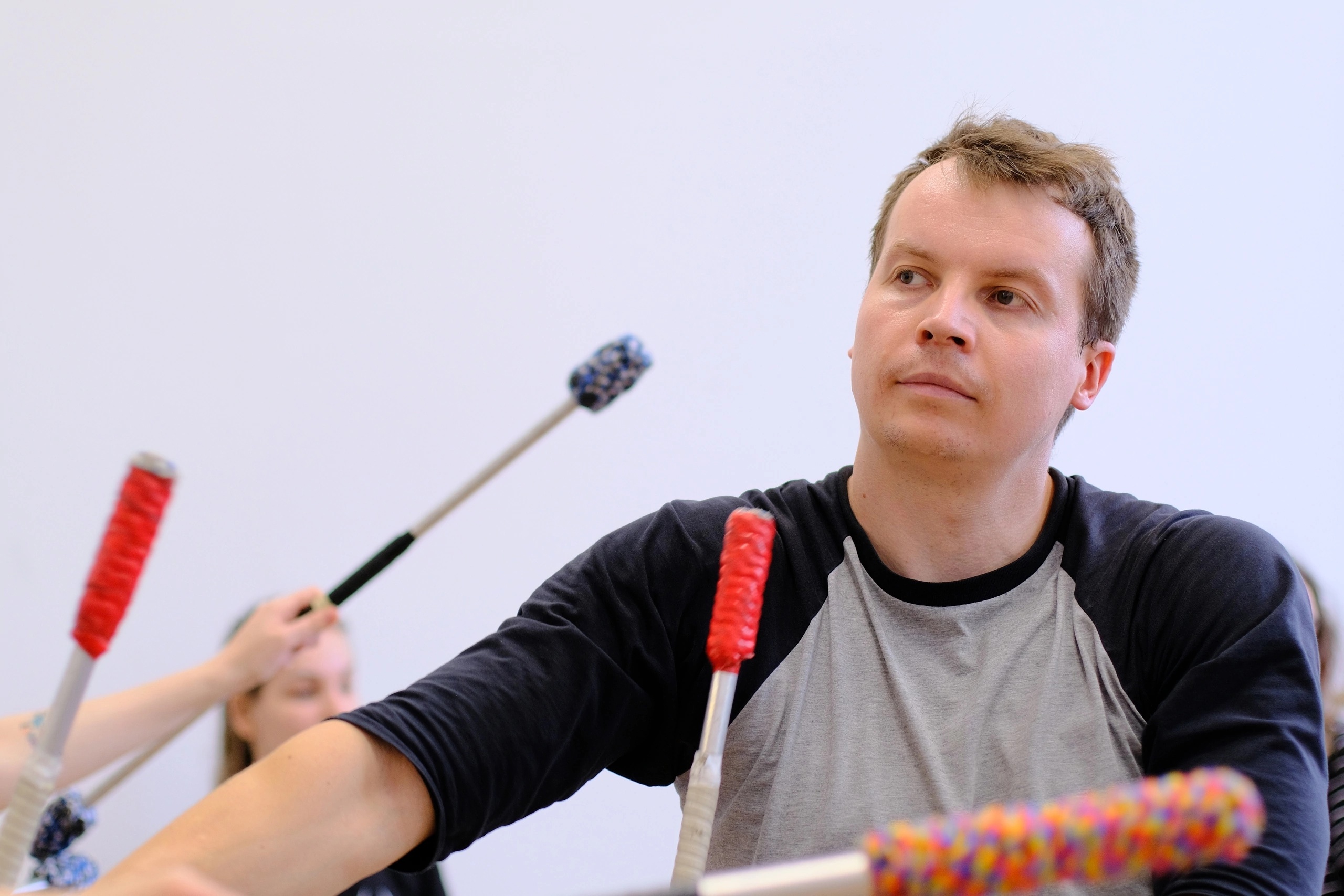 «Это как хореография с предметом. У нас в основном двигаются руки, ноги стоят. Девяносто процентов времени мы работаем с тренировочным реквизитом, без огня. Учим движения, вычищаем уже готовые номера», — рассказывает Владимир.