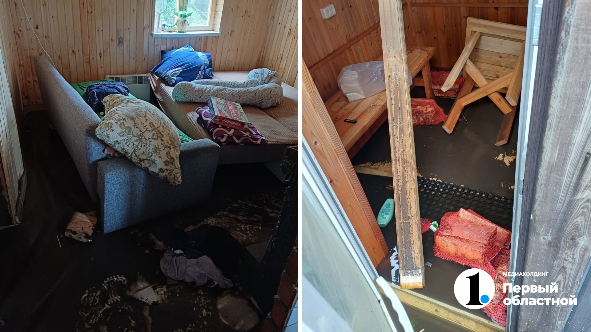 «В воскресенье днем мы запаслись резиновыми сапогами и поехали на наш участок, воды было чуть выше щиколотки. У нас подняло крылечко от воды, баню снесло (она встала под наклоном), диваны сдвинуло, холодильник упал, пол весь грязный и мокрый. Качели, новый утеплитель в упаковках, пластиковые поддоны и бак унесло к соседям. Сломало беседку, затопило туалет. Ремонт в доме в этом году начали делать, придется все по новой начинать», — делится Юлия.