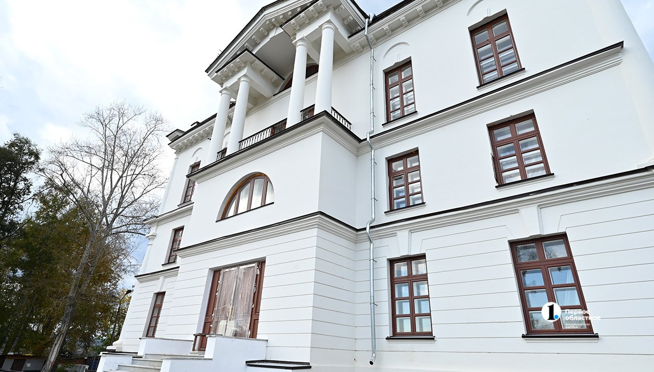 Строительная готовность объекта составляет 88%, завершение реконструкции запланировано на лето 2026 года. Работы проводятся кропотливо — используют современные материалы, но старинные технологии. Трехэтажный особняк и флигели, представляющие единый архитектурный ансамбль, уже практически приняли первозданный вид.