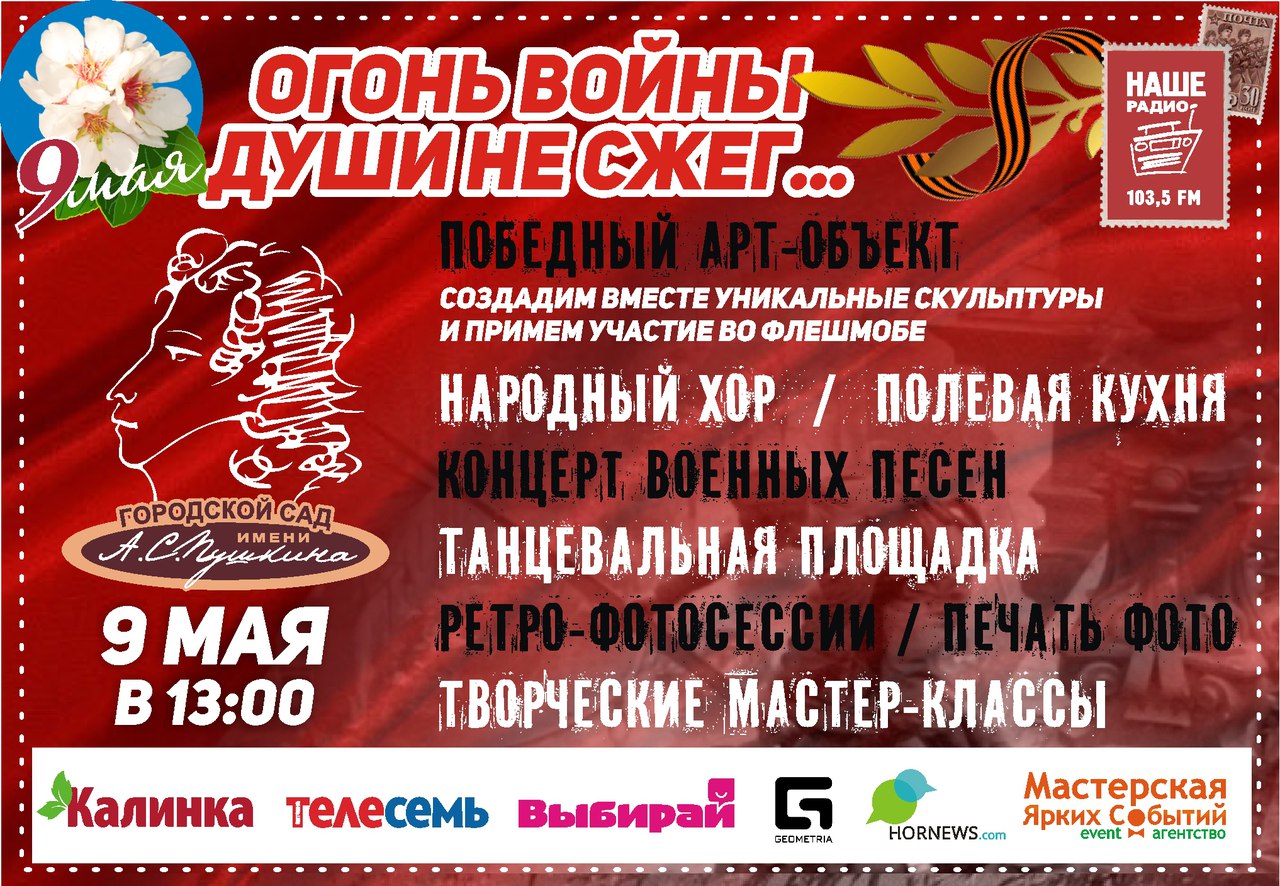 Концерт «Огонь войны, души не сжег…» пройдет в парке Пушкина 9 мая с 13 до 16 часов. Для гостей вход свободный.