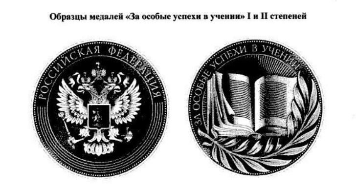 На оборотной стороне медалей будут изображены раскрытая книга и декоративная ветвь, а также надпись «За особые успехи в учении».