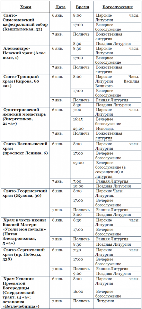 Тем же, кто не сможет прийти на богослужения в саму рождественскую ночь, во многих церквях региона утром 7 января проведут дополнительную литургию. Приводим расписание рождественских богослужений в некоторых храмах Челябинска.
