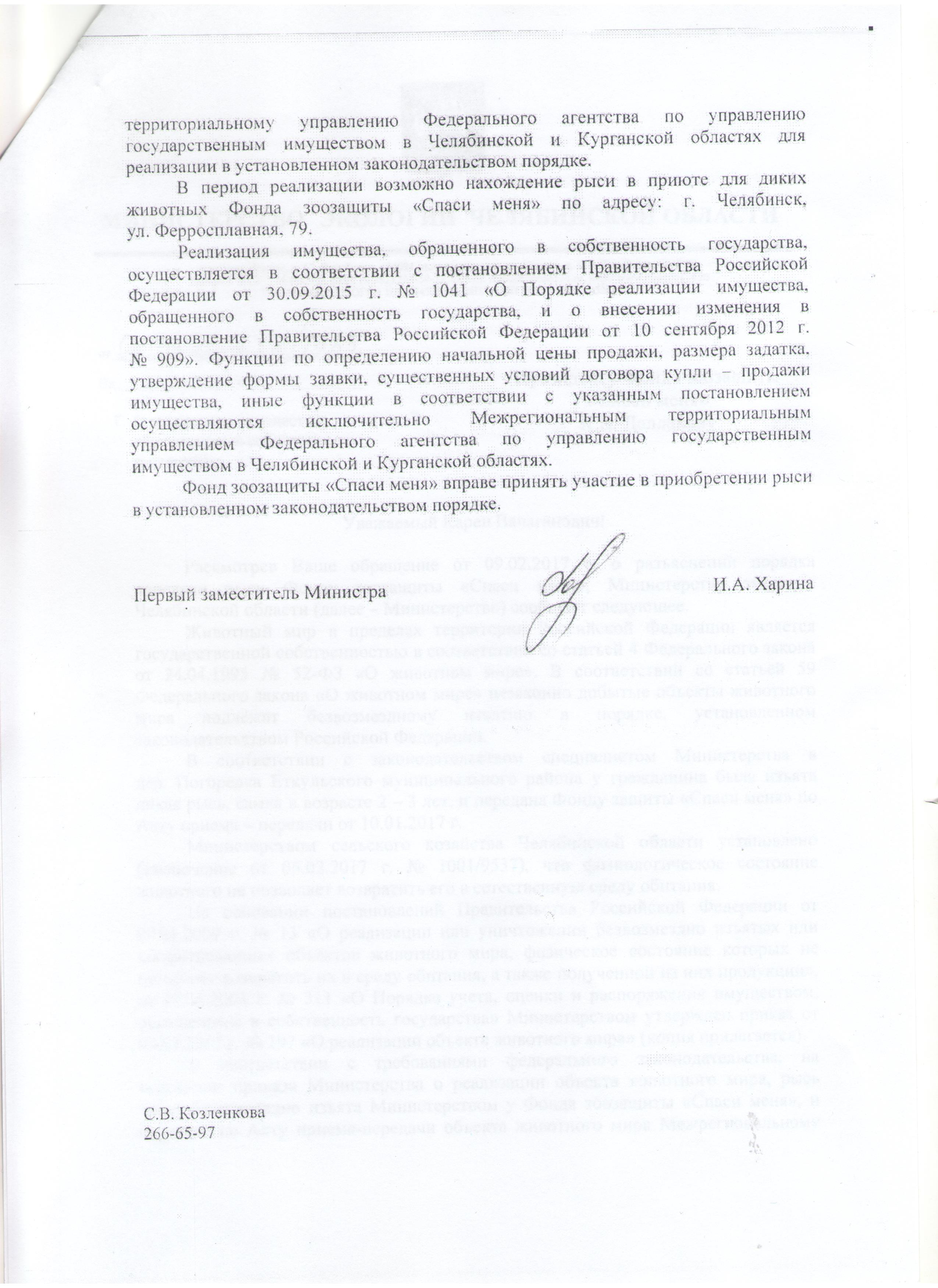 Ситуация с передачей рыси Марыси в НКО стала прецедентом для зоозащитников по всей России. В связи с этим Карен Даллакян обратился в федеральное Министерство за пояснениями.