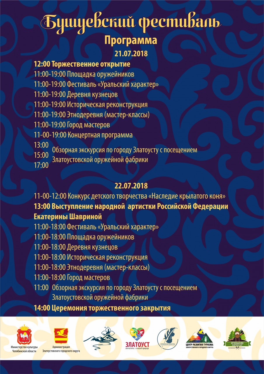 Кроме того, в рамках фестиваля 20 июля в Златоустовском городском краеведческом музее состоится IV научно-практическая конференция «Бушуевские чтения — 2018».