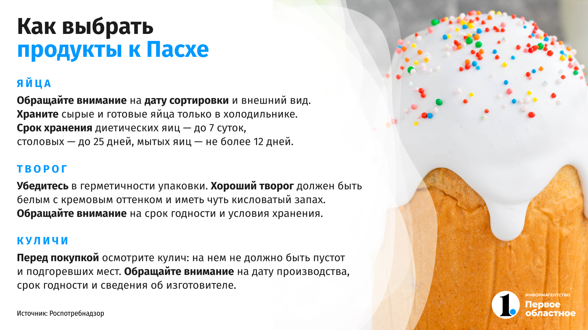 В предстоящее воскресенье, 16 апреля, православные христиане отметят Пасху. Кто-то начал готовиться к ней заранее и уже сейчас покупает яйца, куличи и творог для приготовления пасхи. ИА «Первое областное» собрало рекомендации по выбору главных пасхальных продуктов от экспертов Роспотребнадзора. Своими советами поделились и челябинцы.