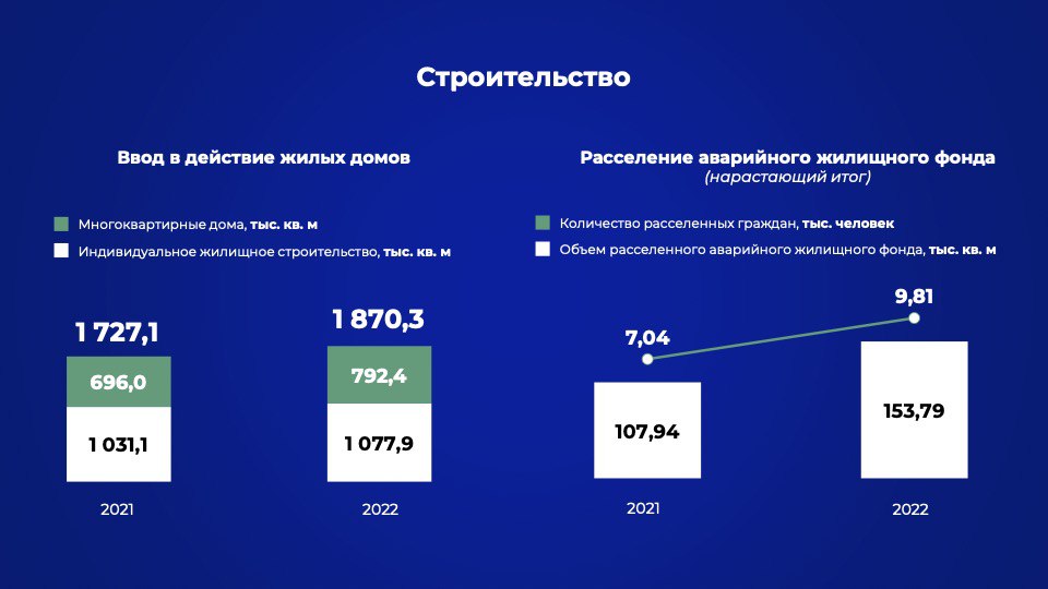Вырос и объем жилищного строительства, продолжается программа расселения из аварийного жилья. Регион смог продолжить реализацию масштабных планов обновления инфраструктуры и крупнейших проектов развития: это и метротрам, и межуниверситетсткий кампус, и крупные проекты строительства рекреационной и спортивной инфраструктуры.
