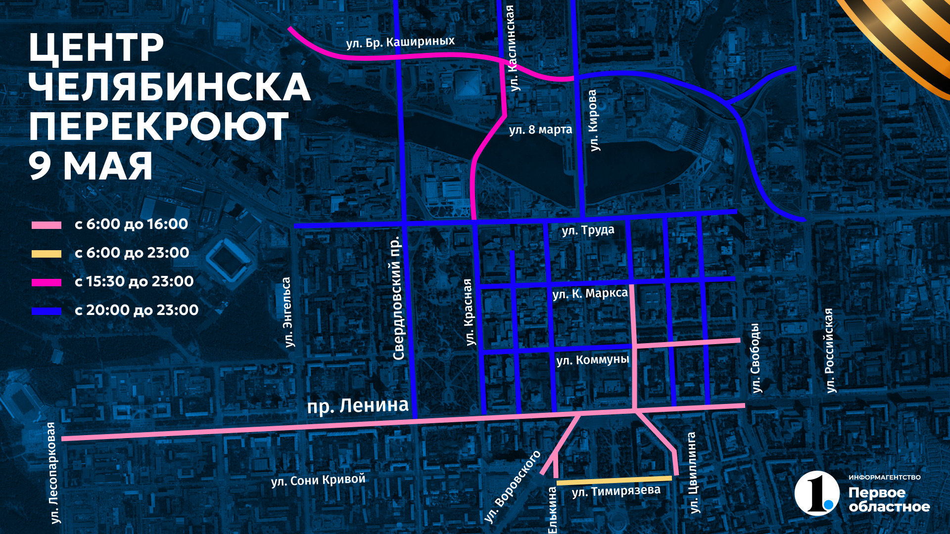 В Челябинске в День Победы, 9 мая, пройдет большое количество праздничных мероприятий. Для их проведения движение в центре города ограничат. Какие-то участки будут закрыты несколько часов, а какие-то — с раннего утра и до позднего вечера. Подробнее рассказали в пресс-службе мэрии.