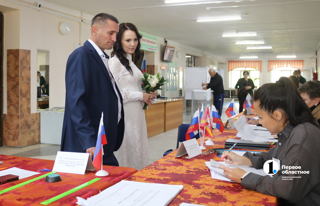 После церемонии бракосочетания Денис с молодой женой отправился голосовать на избирательный участок, который находится в Долгодеревенской школе.