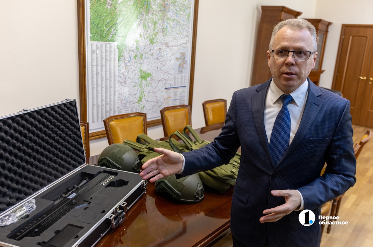 Чтобы служба была более безопасной, по поручению губернатора бойцу подарили два комплекта снаряжения: бронежилеты и каски, которые выдерживают удар осколков и пуль. А главное — Бабай привезет в свою часть противодроновое ружье, оно позволяет устанавливать радиочастоту, на которой работает вражеский дрон, и глушить видеосвязь или блокировать сигналы управления дроном.