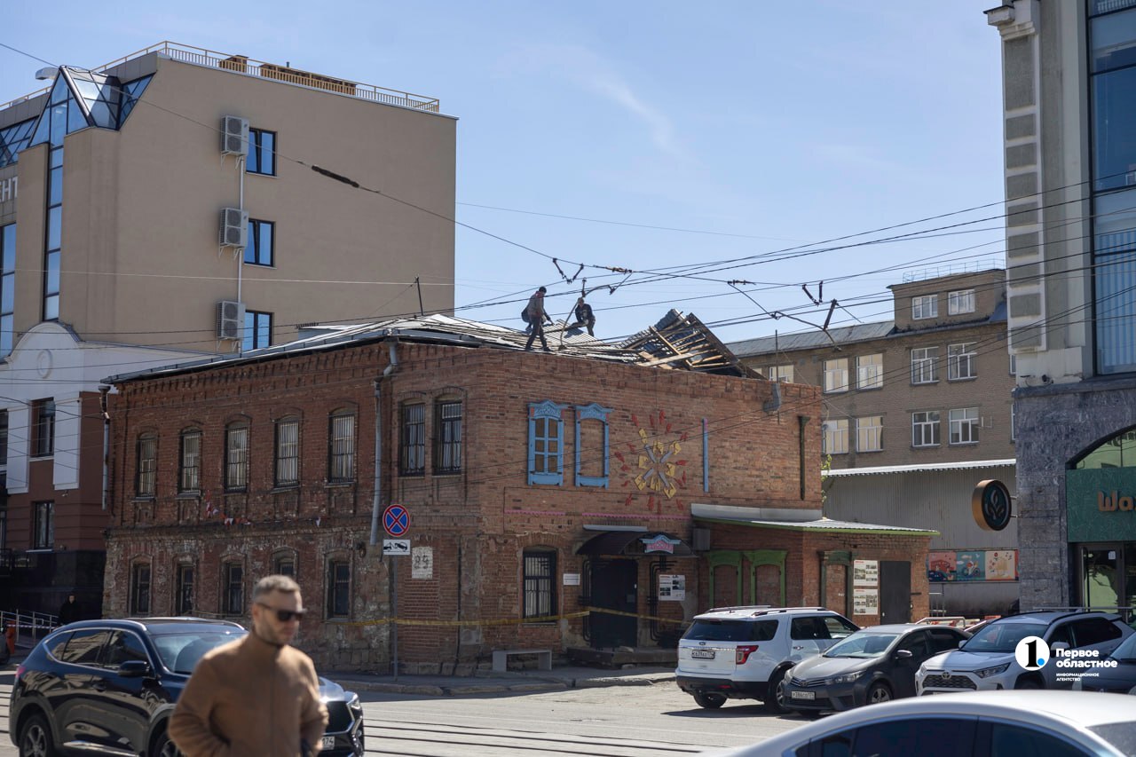 Демонтаж оторванной кровли на особняке купца Беляевского в центре Челябинска начали 30 апреля. Об этом сообщает корреспондент ИА «Первое областное».