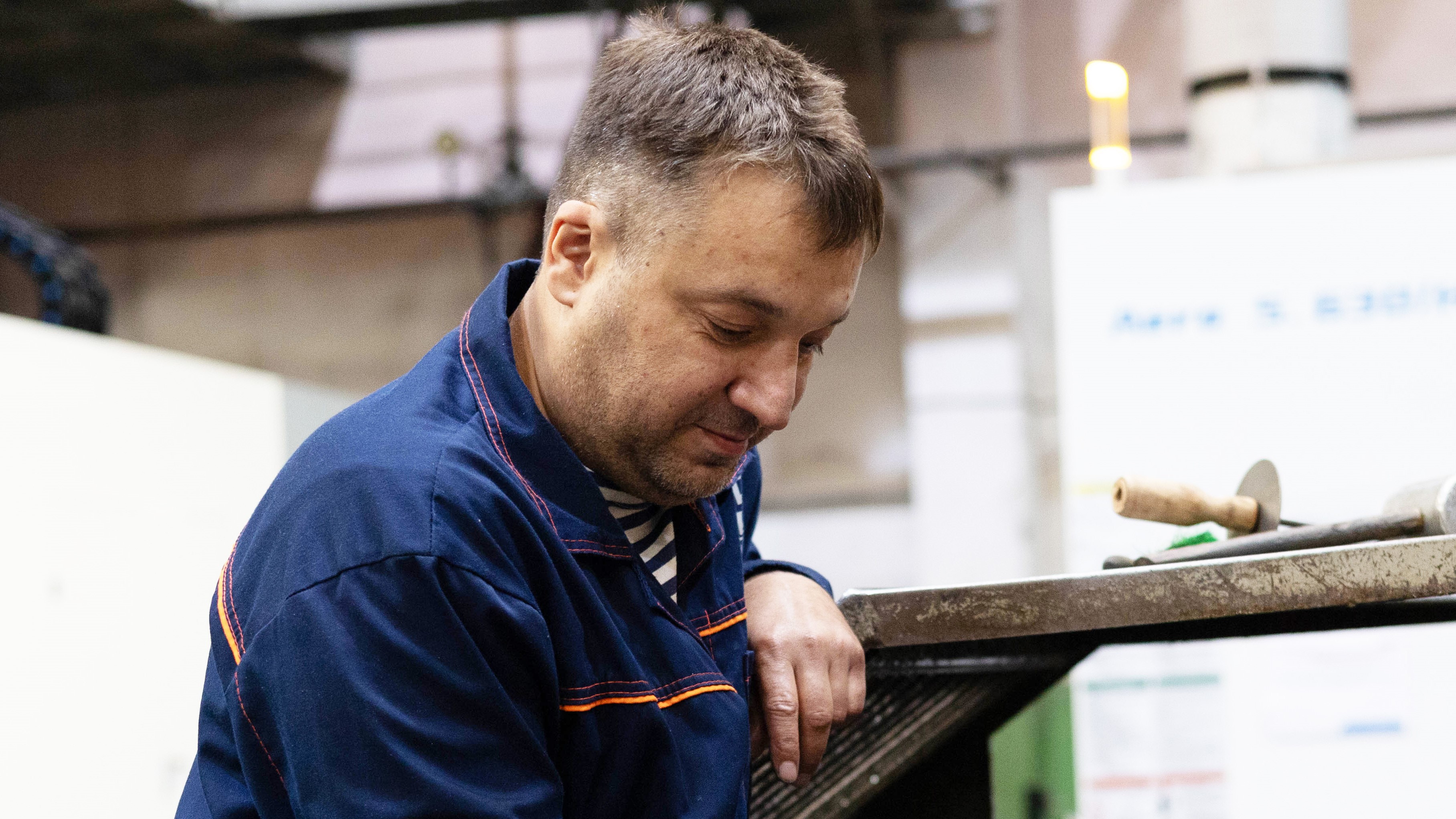 Продолжаем идти по цехам. В них кипит работа. Становится шумно, очень шумно. На месте знакомимся с токарем шестого разряда Сергеем Александровичем Вакулиным. На заводе он работает с 2011 года, общий стаж — 25 лет. Сам Сергей с Алтая. Узнал, что в Челябинске есть уникальный техникум для глухих и слабослышащих имени Иосифа Шуба, накопил денег и приехал учиться. После вернулся домой, на Алтай, жил и работал там, пока не познакомился с челябинкой, за которой вернулся в южноуральскую столицу.