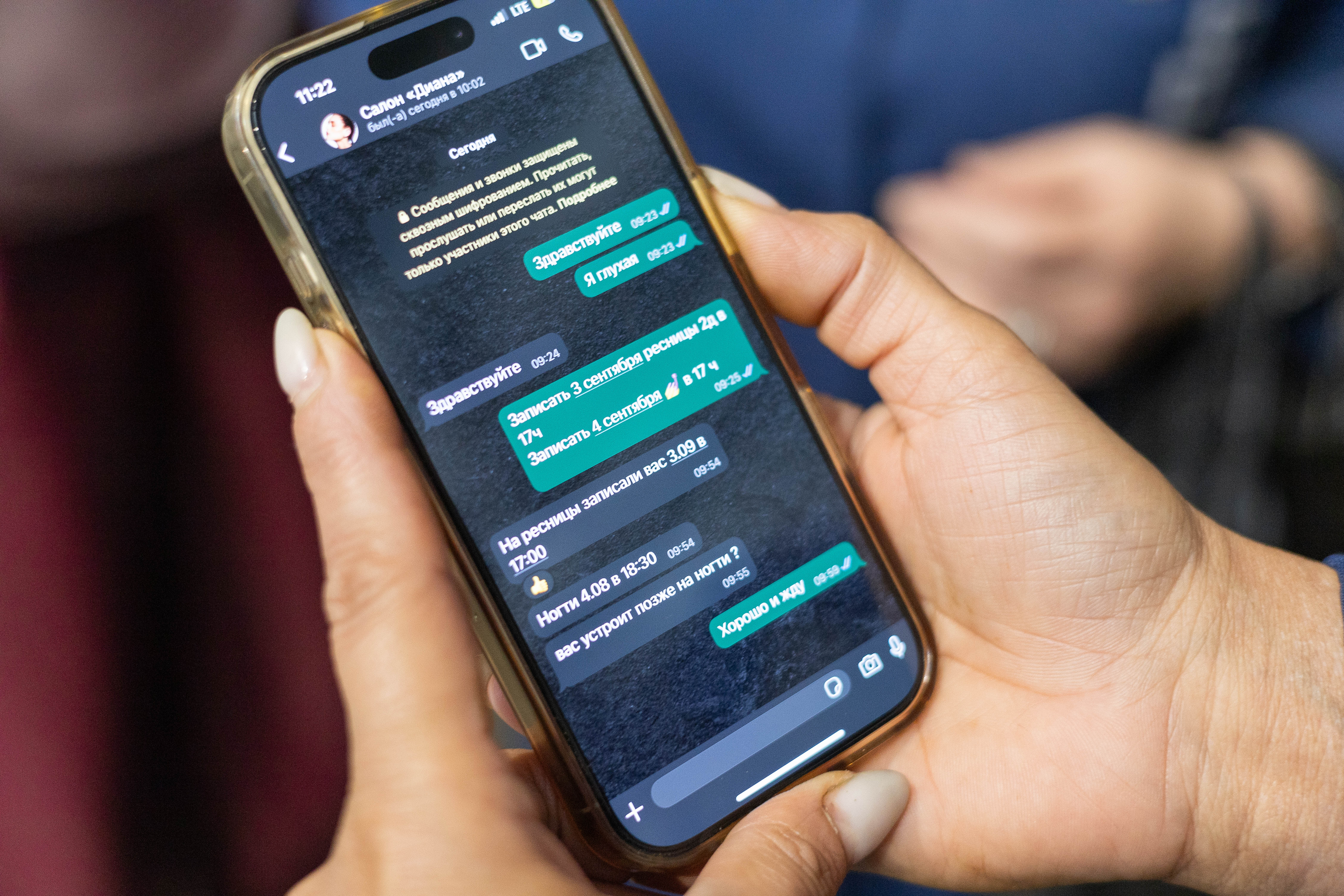 В путешествиях и бытовой жизни, когда рядом нет сурдопереводчика, сильно выручают мессенджеры. Девушки показали, что спокойно записываются на маникюр или окрашивание волос при помощи СМС, всегда с ремаркой «я не слышу».