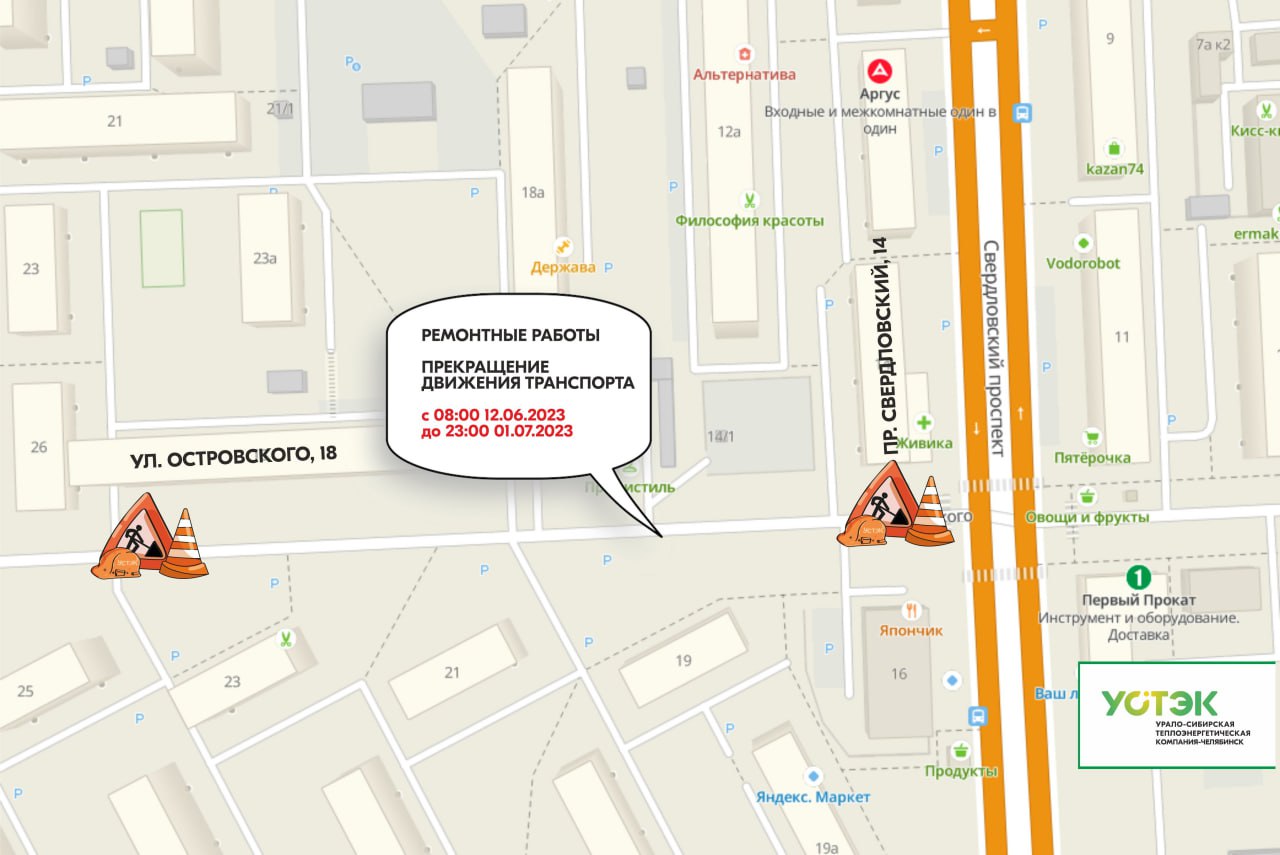 Работы развернутся между домами № 18 на улице Островского и № 14 на Свердловском проспекте. Теплоэнергетическая компания «УСТЭК-Челябинск» уложит вместо изношенных новые стальные трубы диаметром 500 мм в пенополиуретановой изоляции.