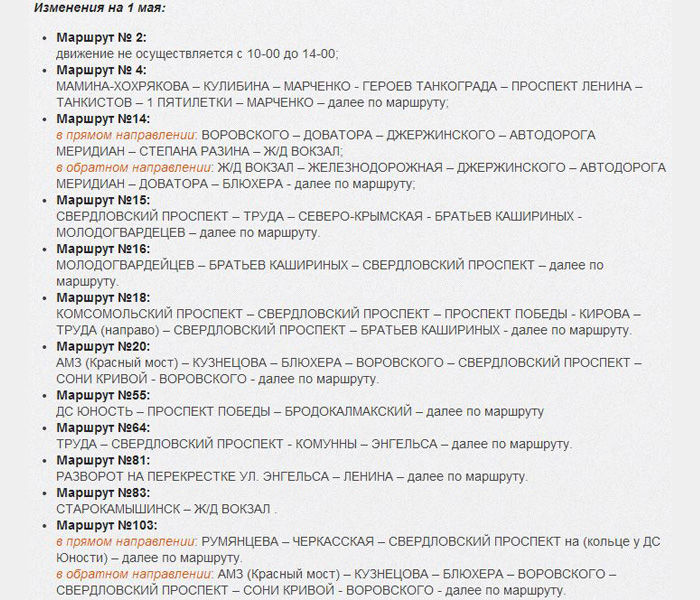 1 и 2 мая автобусам изменять маршруты в связи с перекрытием дорог.