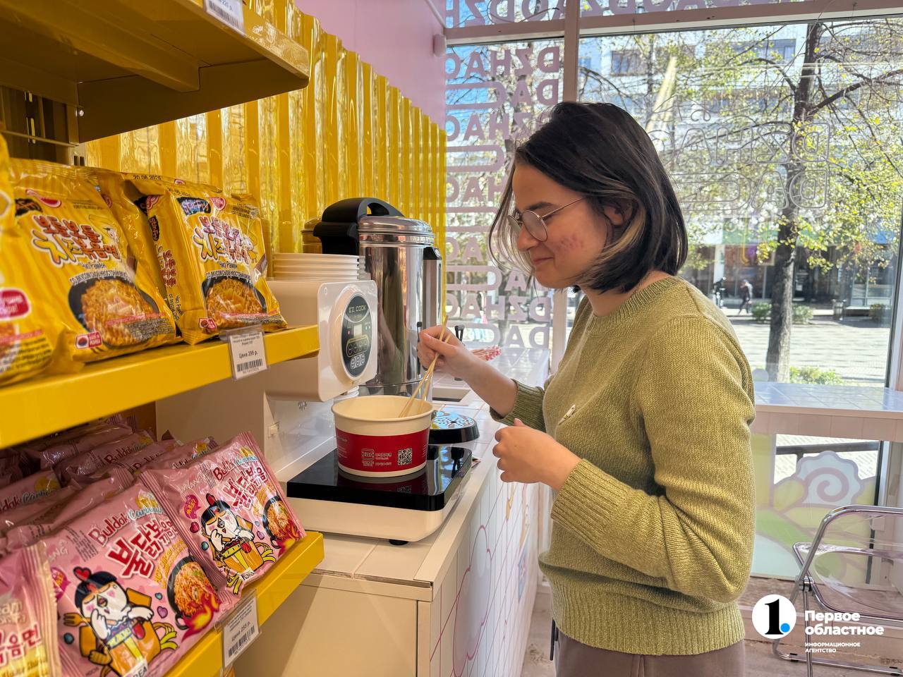 «В Челябинске у нас появилась эта раменоварка, которую мы заказывали из Китая. В ней можно приготовить бесплатно. Вообще, мы очень хотели сделать атмосферное место, красивое, чтобы тут можно было не просто купить и пойти дальше, а можно было посидеть, попить красивый бабл-ти, поесть тут же приготовленную лапшу», — поделилась управляющая Екатерина.